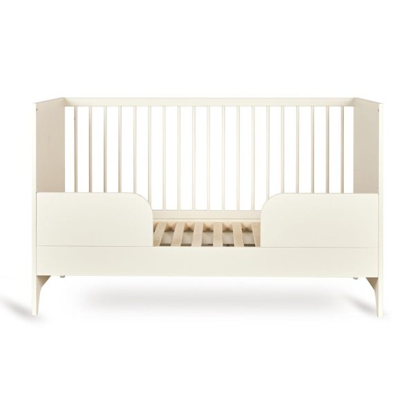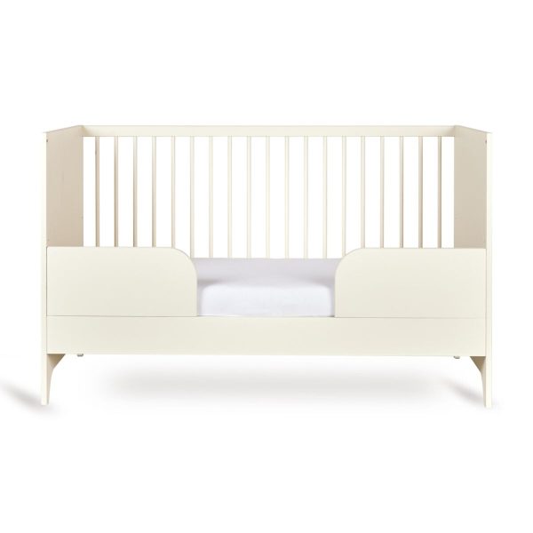 Το προεφηβικό κρεβάτι Tsugi εξελίσσεται μαζί με το ταξίδι του μικρού σας: το κρεβάτι μετατρέπεται εύκολα σε ημι-ανοιχτό κρεβάτι για νήπια, αντικαθιστώντας μία από τις πλαισιωμένες πλευρές με την περιλαμβανόμενη προστατευτική μπάρα. Αυτή ενσωματώνεται αρμονικά στο σχέδιο, προσφέροντας επιπλέον ασφάλεια χωρίς να διακυβεύεται η ελαφριά, μονόχρωμη αισθητική της συλλογής Tsugi.